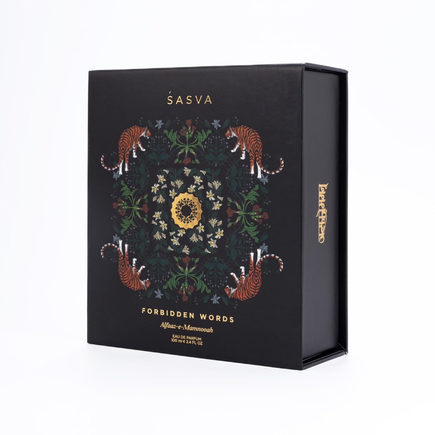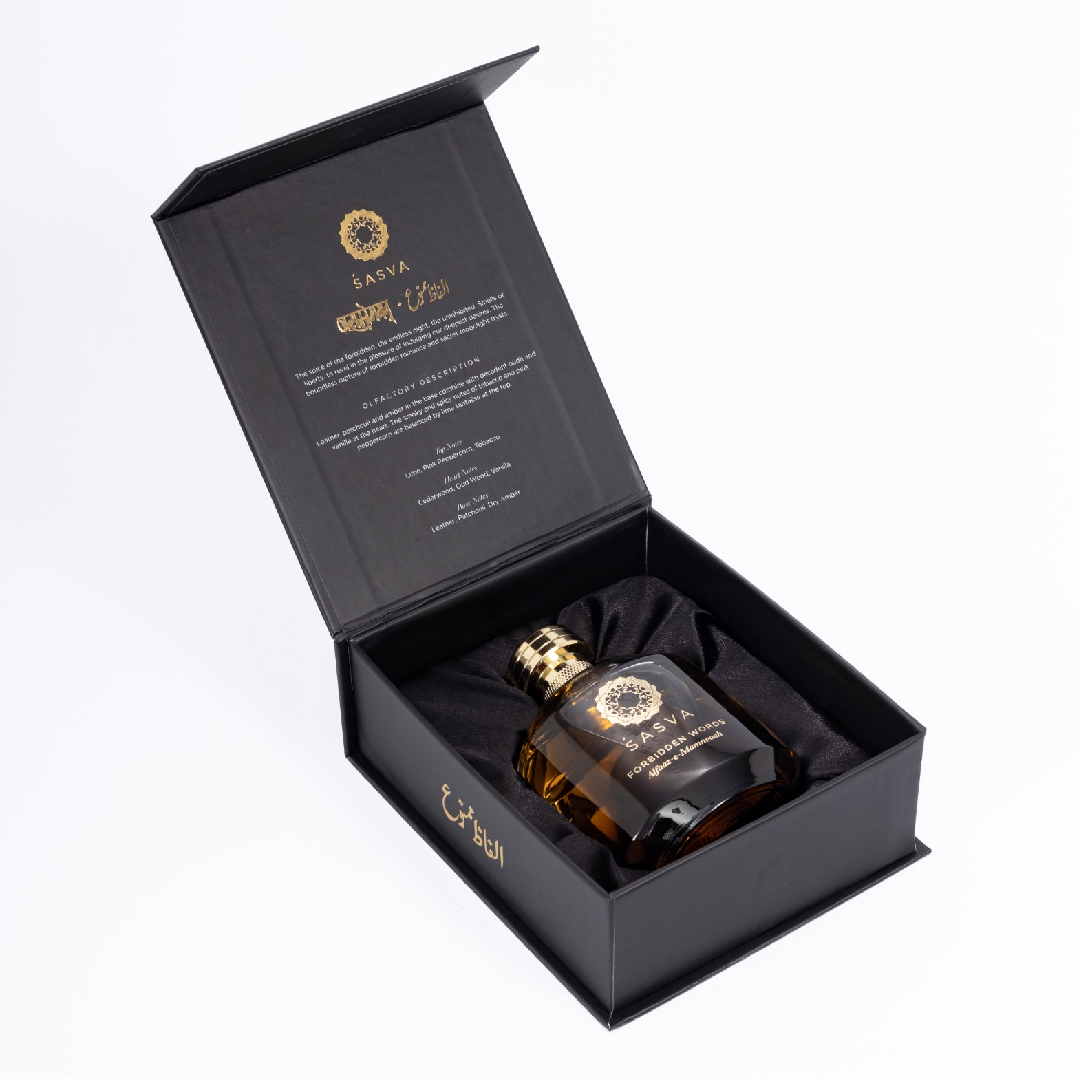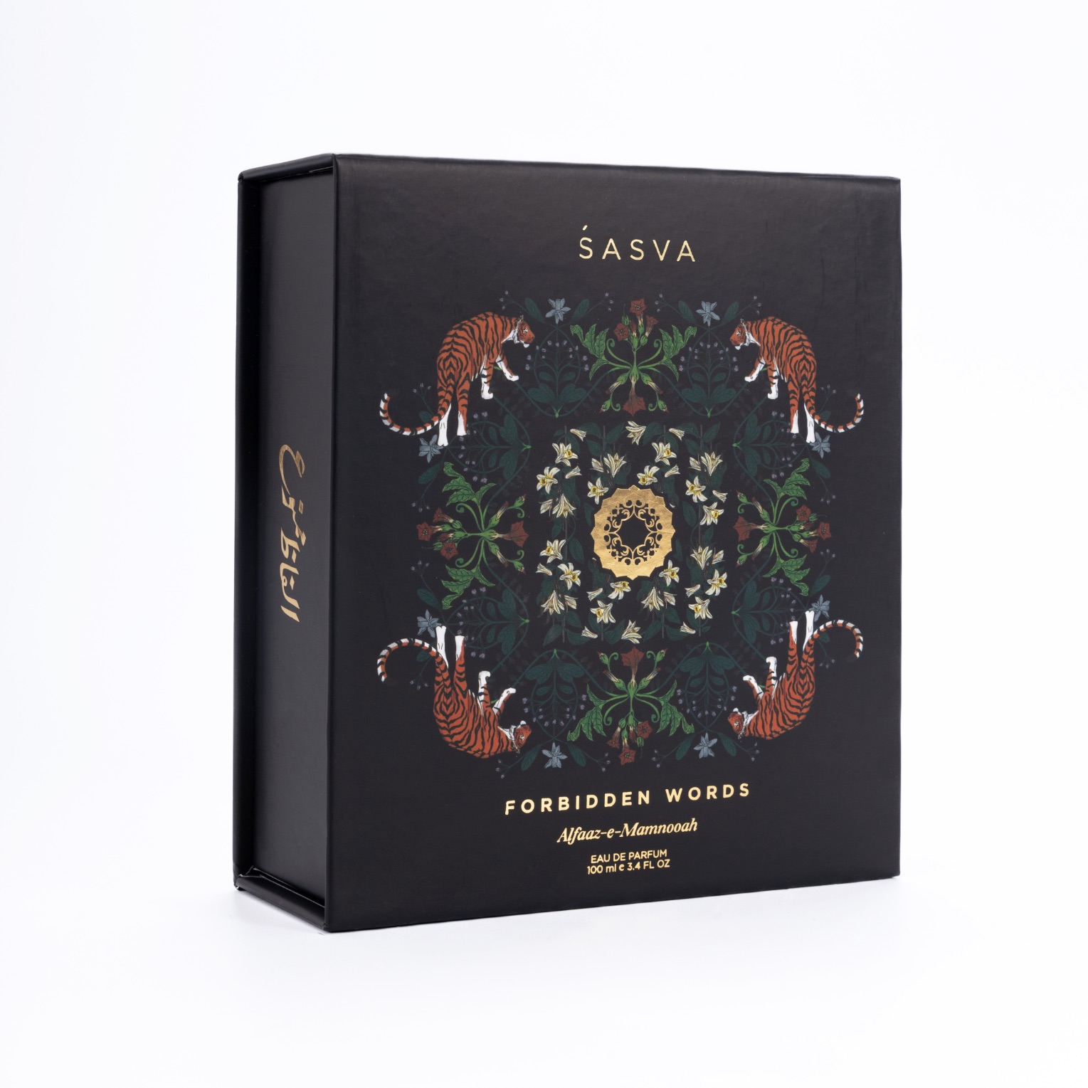 Sasva Forbidden Words Alfaaz-e-Mamnooah, es una poderosa propuesta dentro de los perfumes de nicho. Comienza con un estallido cítrico de lima que despierta los sentidos, seguido por un corazón oscuro de oud y vainilla, envuelto en notas especiadas de pimienta rosa y tabaco. La base de cuero, pachulí y ámbar completa una experiencia olfativa rica, decadente y profundamente adictiva.
