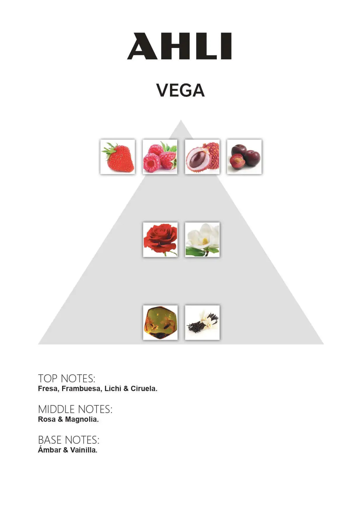 Esta fragancia abre con una salida frutal de fresa, frambuesa, lichi y ciruela. En las notas de corazón encontramos rosa y magnolia que le dan un toque suave, agradable y versátil a la fragancia. En las notas de fondo tenemos la clásica combinación gourmand de vainilla y ámbar.